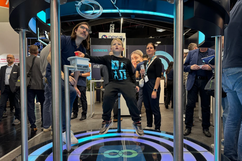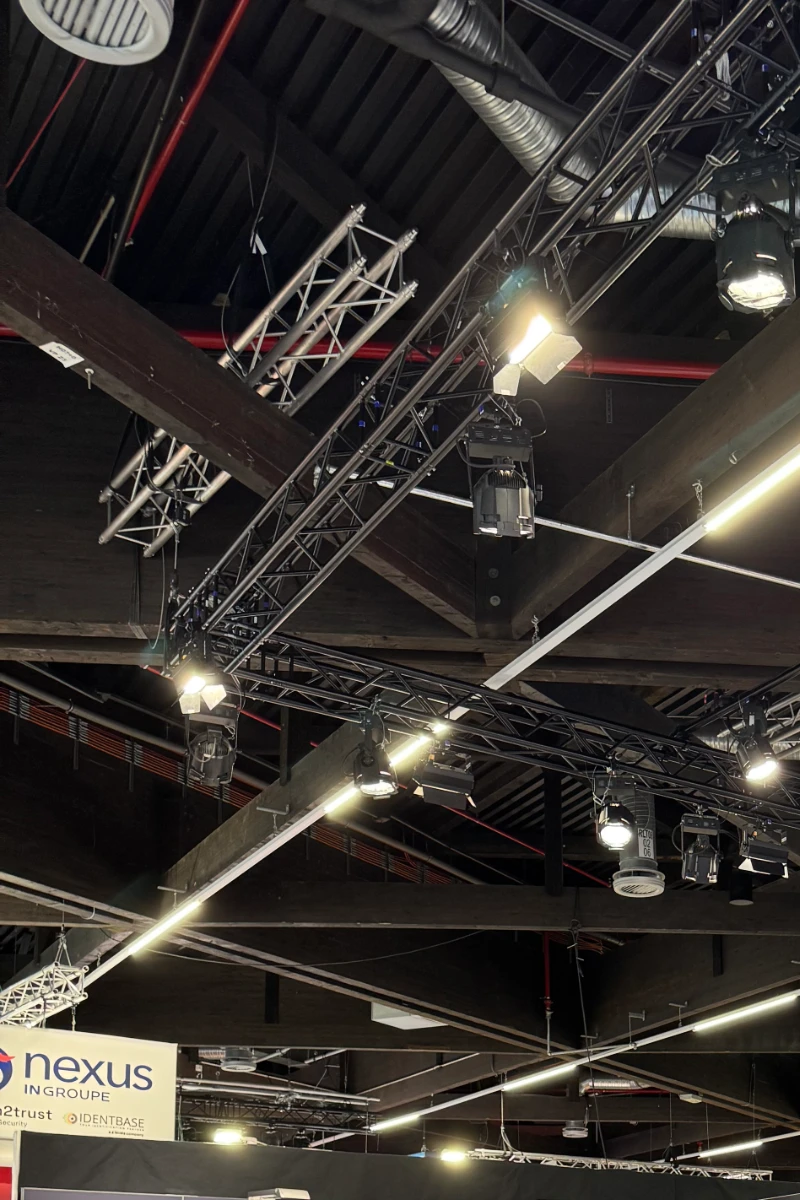 Große Marke, präzise umgesetzt: Für Siemens lieferten wir Rigging und Beleuchtung als technische Basis für einen klar strukturierten Messeauftritt.