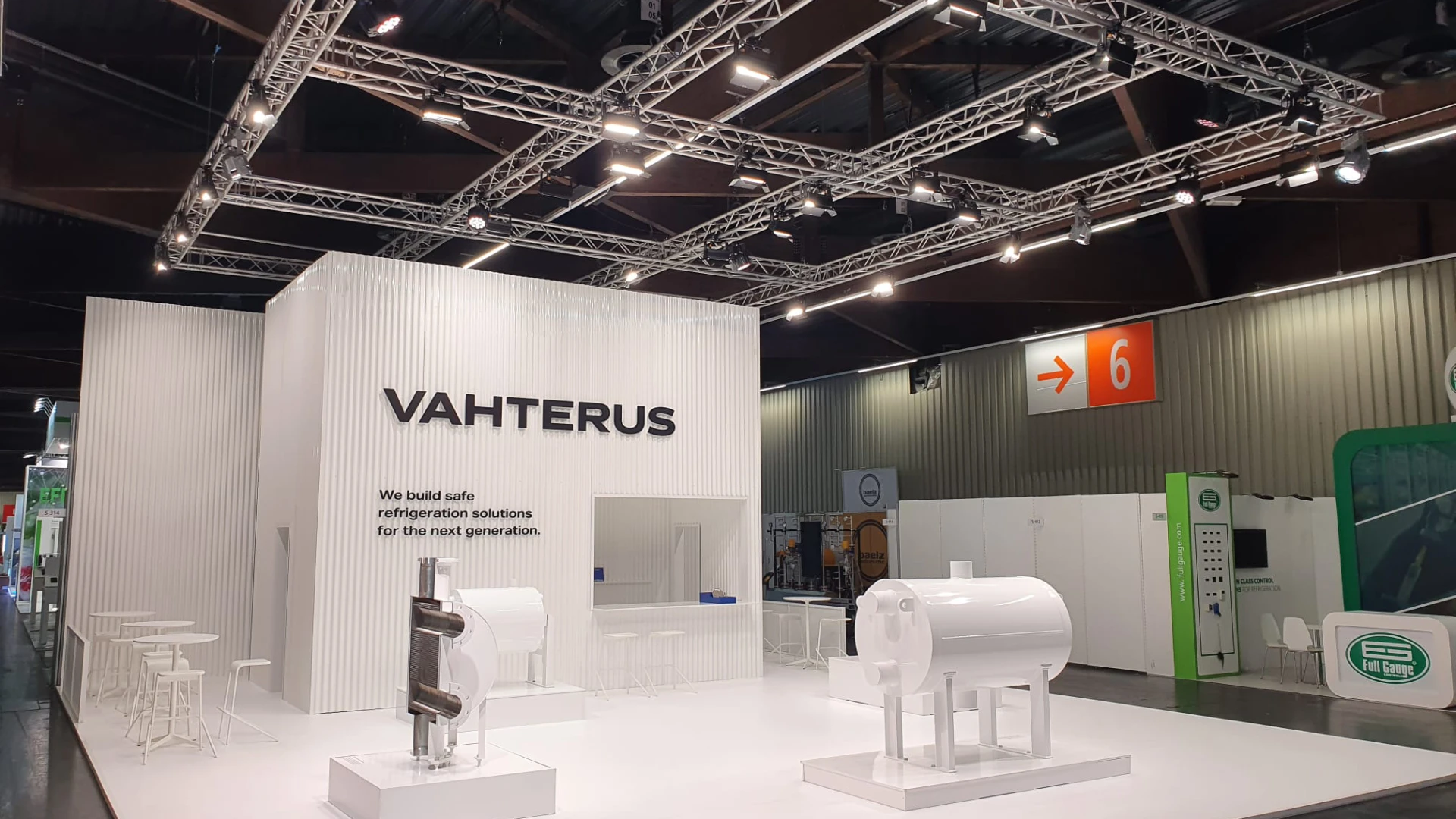 Technik braucht Klarheit: Durch präzise Lichttechnik und sicheres Rigging setzten wir den Vahterus-Stand strukturiert und hochwertig in Szene.